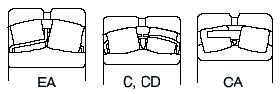調(diào)心滾子軸承,如圖所示,有高負(fù)荷容量設(shè)計的EA型,C型,CD型,CA型。設(shè)計上, EA型,C型,CD型 為沖壓保持架, CA型為銅合金車制保持架。EA 型軸承具有高負(fù)荷容量,低轉(zhuǎn)矩的特長。
